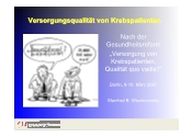 Versorgungsqualität von Krebspatienten Was soll erreicht, was soll vermieden oder zumindest verringert werden ? Welche Qualitätsebenen werden tangiert? Grundpfeiler der Qualitätspolitik